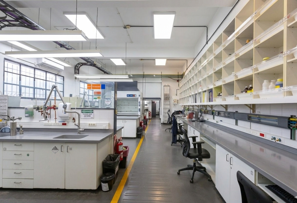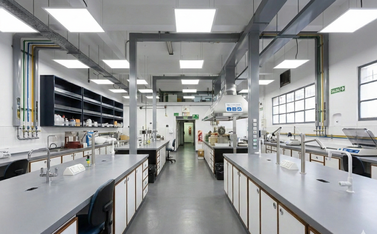 Amplios espacios de laboratorios para usos varios en PB media, conectados y con doble circulación.